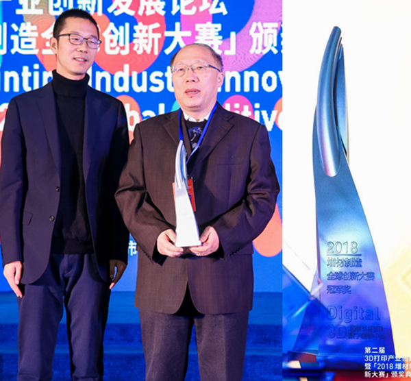 2018年12月21日,第二屆3D打印產(chǎn)業(yè)創(chuàng)新發(fā)展論壇暨「2018增材制造全球創(chuàng)新大賽」頒獎典禮在北京瑪雅科技村會議中心舉行。大會集聚增材制造上下游企業(yè)代表,以及智能制造、大數(shù)據(jù)、軟件、生命工程等跨領(lǐng)域權(quán)威專家,展現(xiàn)最新科研成果和切實的應(yīng)用案例,深度剖析3D打印技術(shù)在滿足個性化需求的創(chuàng)成式設(shè)計、快速批量化制造和數(shù)字化解決方案過程上,為各個行業(yè)帶來的變革和發(fā)展趨勢。本次會議為“2018年增材制造全球創(chuàng)新大賽”獲獎?wù)哳C獎,武漢天昱智能制造有限公司張海鷗教授團隊的“微鑄鍛銑復(fù)合增材制造技術(shù)”獲得本屆大賽的冠軍獎。