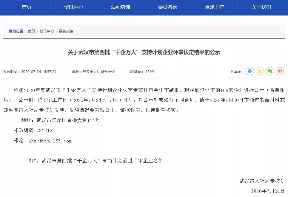 天昱智造入選武漢市第四批“千企萬人”支持計劃