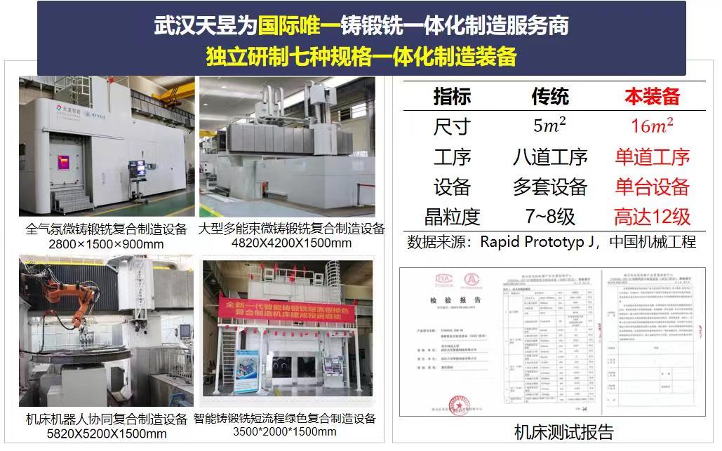 華科-天昱團(tuán)隊(duì)金屬增材制造-微鑄鍛技術(shù)主要解決了傳統(tǒng)制造中,大型復(fù)雜件受鍛機(jī)構(gòu)限制無(wú)法整體鍛造,只能分塊鍛后拼焊而使可靠性降低的問(wèn)題。應(yīng)用同步數(shù)字微鍛,可使鍛機(jī)需要的壓力大大減少,制造時(shí)間縮短1/2~2/3,可鍛鍛件的面積增加3倍,材料利用率提高 2.6 倍,節(jié)能 80~90%,碳排放降低90~93%。