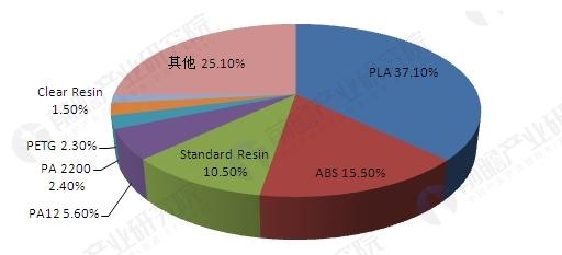 隨著技術(shù)和研發(fā)的推進,已有300多種材料可用于3D打印制造,但由于現(xiàn)階段90%的3D打印機用戶都使用的是桌面級產(chǎn)品,因此像ABS、PLA這兩種塑料材質(zhì)的耗材用量占比超過50%,目前高分子材料生產(chǎn)商也主要集中于ABS和PLA以及尼龍材料。