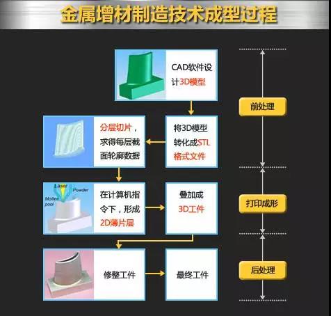 金屬增材制造是增材制造技術最重要的一個分支。是以金屬粉末/絲材為原料,以高能束(激光/電子束/電弧/等離子束等)作為刀具,以計算機三維CAD數(shù)據(jù)模型為基礎,運用離散-堆積的原理,在軟件與數(shù)控系統(tǒng)的控制下將材料熔化逐層堆積,來制造高性能金屬構件的新型制造技術。