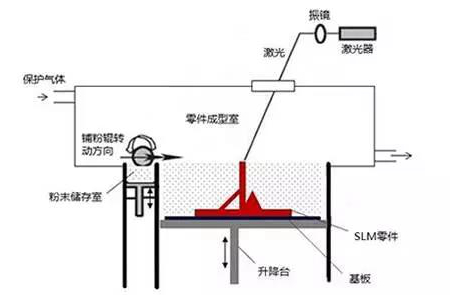 激光選區(qū)熔化技術(Selective Laser Melting,SLM)是由粉床選區(qū)激光燒結技術(SLS)發(fā)展而來,以金屬粉末為加工原料,采用高能密度激光束將鋪灑在金屬基板上的粉末逐層熔覆堆積,從而形成金屬零件的制造技術。