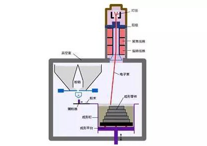 電子束選區(qū)熔化技術(Electron Beam Selective Melting,EBSM)的原理與SLM類似,只不過EBSM是在真空環(huán)境中,以電子束作為輸出熱源。相比激光,電子束更容易獲得,可以相應的降低部分加工成本,同時真空的工作環(huán)境也可以有效保證鈦合金和鋁合金在內(nèi)的很多活潑金屬在加熱過程中不易被氧化。